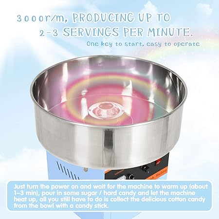 Amazon Com Nurxiovo 21 Inch Cotton Candy Machine Electric Commercial Cotton Candy Floss Maker With Sugar Scoop And Staniless Steel Big Drawer Blue Home Kitchen